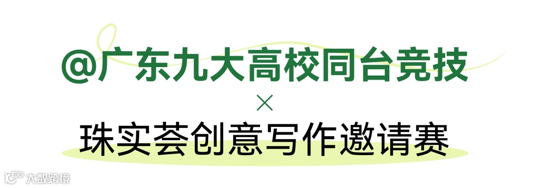 珠实荟联动广东外语外贸大学(发起单位)、中山大学、暨南大学、华南师范大学、华南农业大学、广州大学、广东技术师范大学、广东财经大学、广东工业大学九所高校发起创意写作邀请赛,展现广东高校文学创作底蕴与活力,与高校合作培育文学新生代。