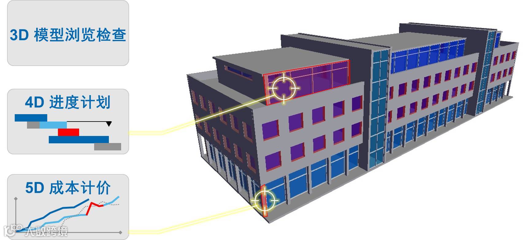 iTWO 4.0不但了延续iTWO平台的核心技术——5D BIM虚实结合的建筑流程,还将整个模块搬上云端。用户不仅能在云端进行3D模型浏览检查,还能在同一界面计划对应构建的工程进度,依照需求一键生成计价,根据虚拟建造后的优化方案在平台上进行实体建造的招投标、供应商管理、施工管理和成本管控等全生命周期管理。iTWO 4.0为建筑行业打造模型轻量化、操作智能化、管理一体化的互联管理平台。