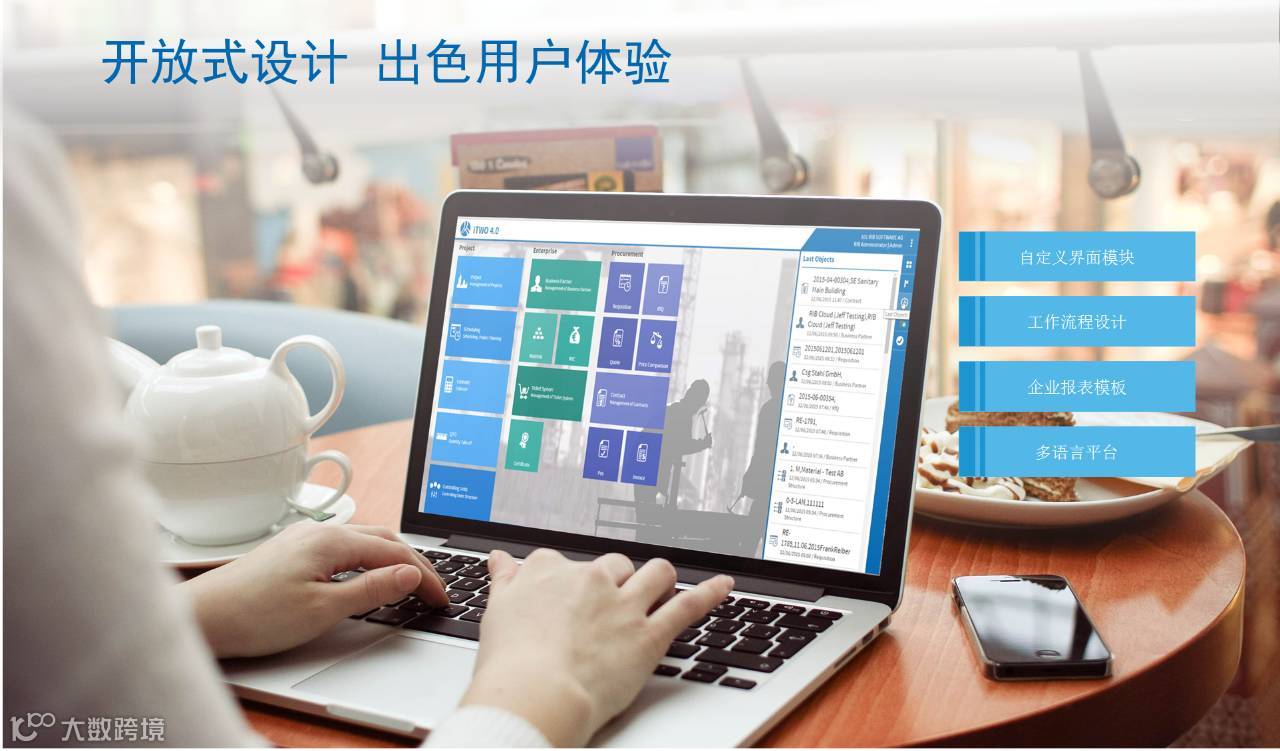 iTWO 4.0不止支持项目级别的管理,更支持企业级全球业务的大数据协同管理。iTWO 4.0采用开放式设计,让用户能自定义工作流程、企业报表、ERP接入等,以适应不同的企业规模和业务发展。平台更支持界面配置自由化、语言多元化、货币全球化,带来出色自由的用户体验。
