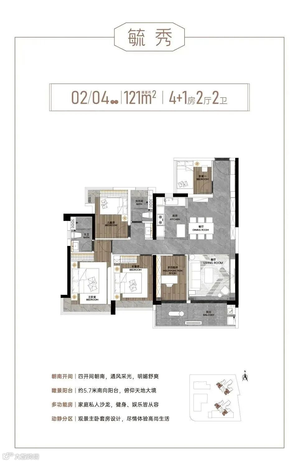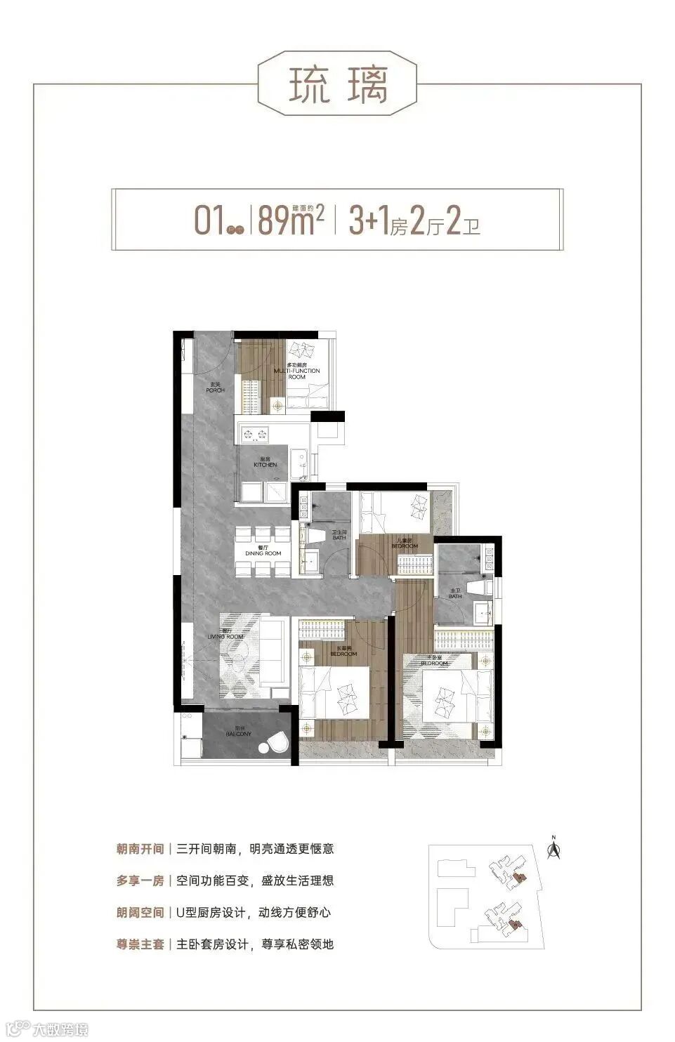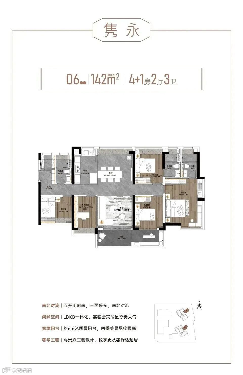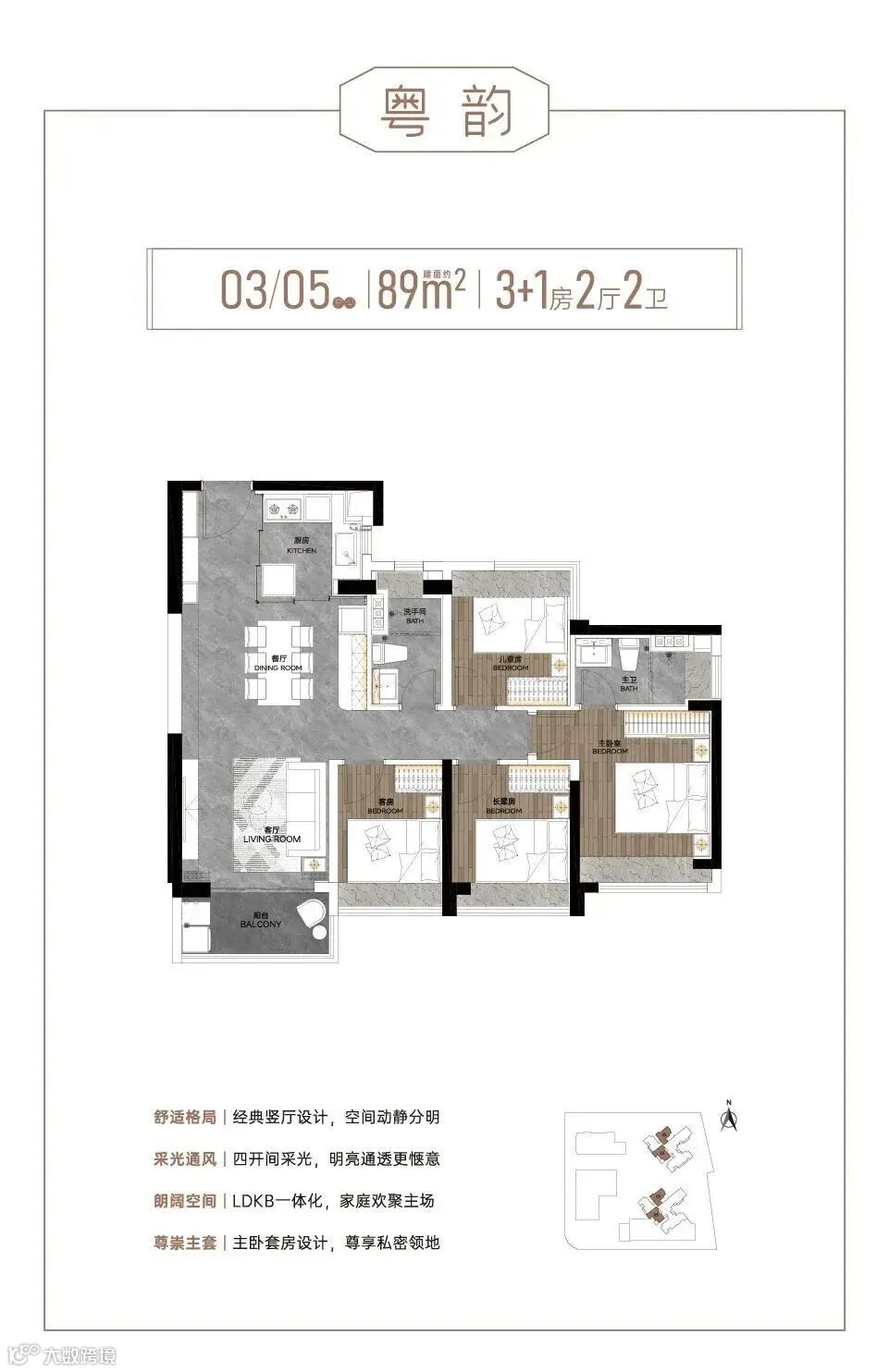 产品涵盖建面约89-142㎡四至五房,是西关难得的纯四房起步社区,保证圈层的纯粹性。其中,约89㎡可做四房,同等面积多一房;约121㎡五房,四开间朝南搭配约5.7米南向观景阳台,阳光美景萦绕;约142㎡五房双主套设计,五开间朝南,尽享尊贵私密。