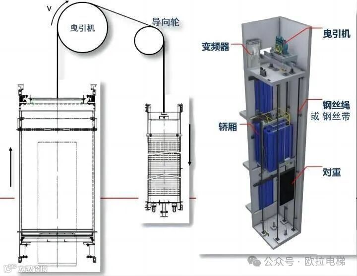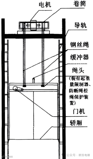 曳引驱动电梯提升绳靠主机的驱动轮绳槽的摩擦驱动的电梯,曳引式是目前和乘客电梯一样的驱动形式,也是目前来讲最科学最成熟的结构。