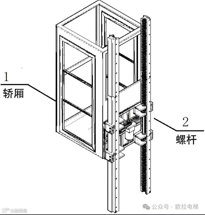 其结构简单的说是轿厢的侧面(或后面)安装上轴承装置,由电动机通过皮带或齿轮驱动轴承装置正反旋转沿着螺杆上下运行。