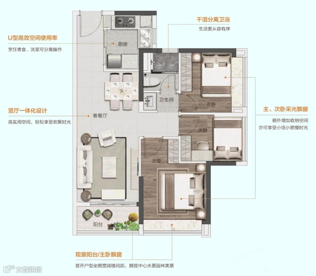 在广州主城区,约69㎡的面积,能做到真三房,十分罕有。过道0浪费,每处空间都能合理利用,使舒适度与实用性得到充分保障。