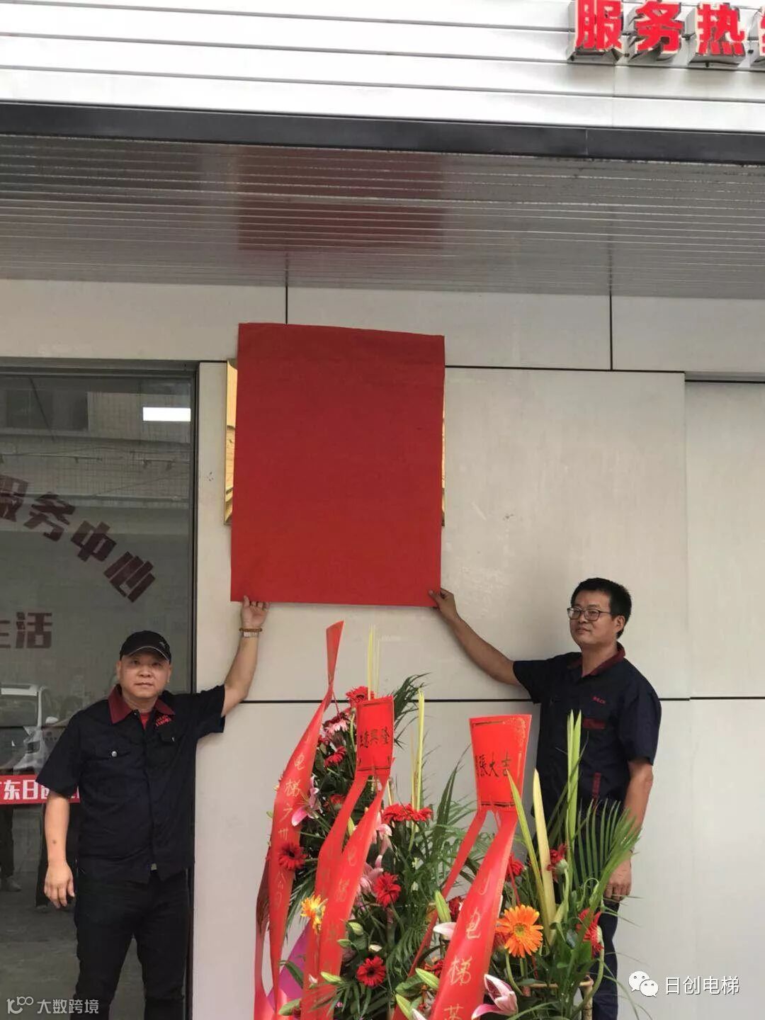 11点18分总公司重要领导亲临现场,为广东日创电梯花都服务中心开业揭牌。