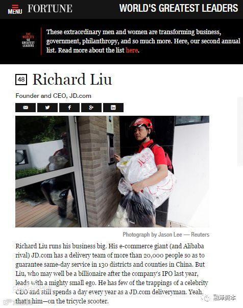 这是东哥的荣誉,外媒评选的全球最佳CEO TOP50。