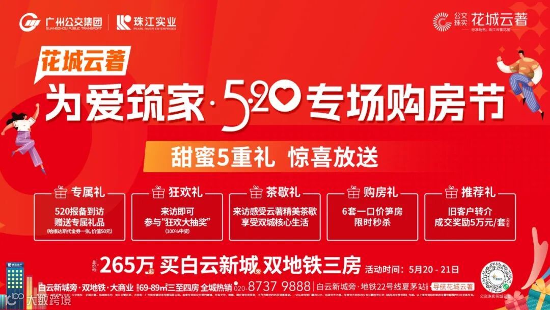 买房不想踩坑,既要找准区域、配套齐全,还有认准大品牌开发商。公交珠实·花城云著,享双核芯圈发展利好,楼下约20米地铁口,双地铁上盖,一路之隔约16万㎡商业品质大盘,高性价比与升值空间兼备。趁着520专场团购节甜蜜5重礼活动,钜惠就在面前,把握置业良机!
