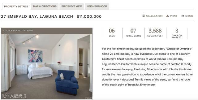 据华尔街日报2月20日报道,“股神”巴菲特将自己在加州拉古纳海滩(Laguna Beach)的豪宅挂牌出售。
