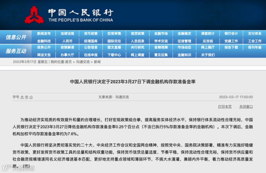 新年第一次降准来了!3月17日,据央行官网披露,为推动经济实现质的有效提升和量的合理增长,打好宏观政策组合拳,提高服务实体经济水平,保持银行体系流动性合理充裕,央行决定于2023年3月27日降低金融机构存款准备金率0.25个百分点,其中不包括已执行5%存款准备金率的金融机构。