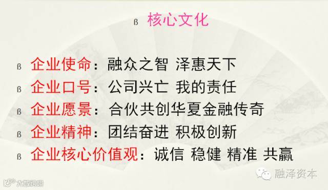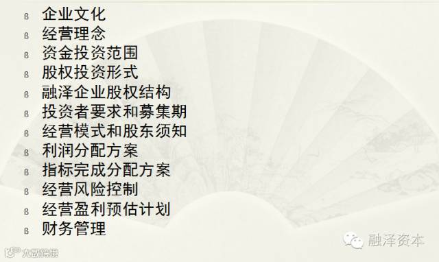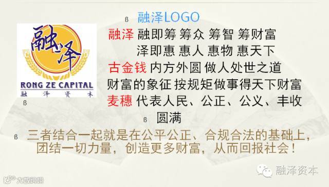 融众之智,泽惠天下”,创新投资模式:运用合伙制资金,构建高效的投资团队、专业、诚信、互利共赢的服务平台。
