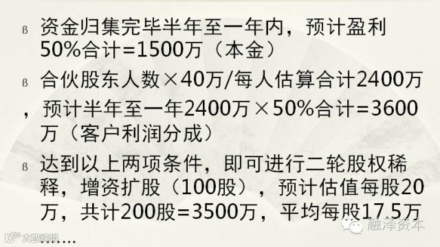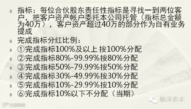 ß分红时间:每年8月8日为结算日,结算日起30日内完成当期分红派发ß分红原则:本金盈利不作分红,业务收益按合伙股东所占比例分配。