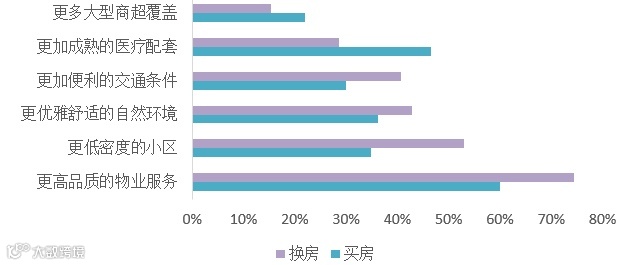 数据显示,将近60%的受访者表示愿意为高品质的物业付费,其次是更成熟的医疗配套、更优雅舒适的自然环境。