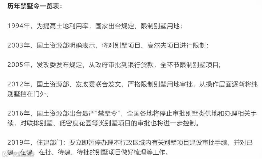 另一方面,近几年“禁墅令”不断升级,各部门暂停办理别墅建设审批手续。别墅的未来,注定是孤本和藏品。