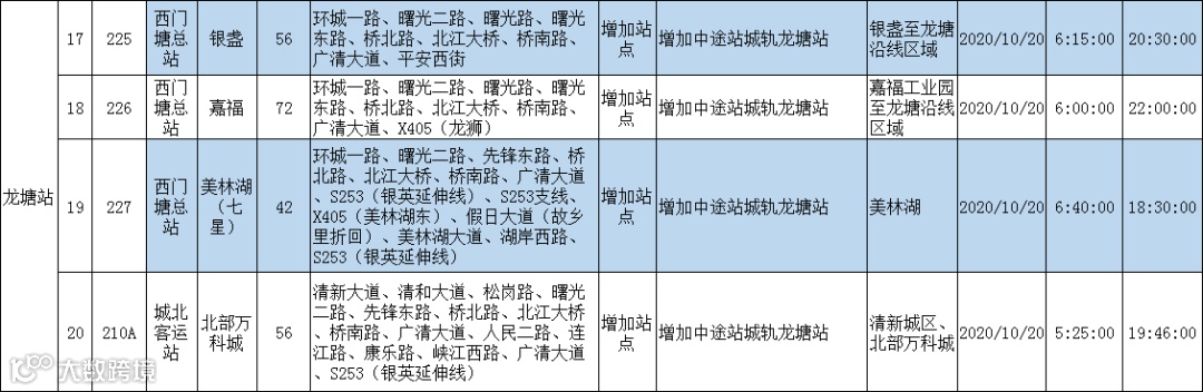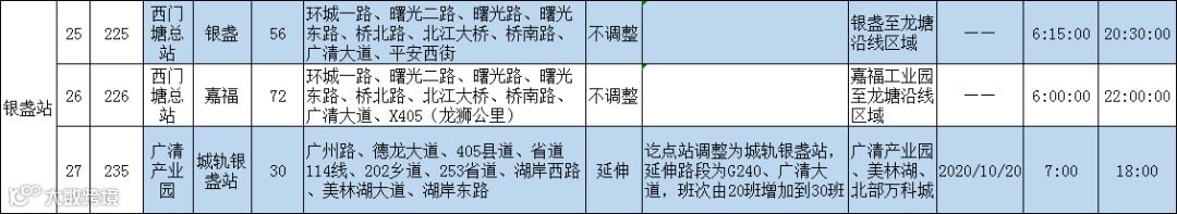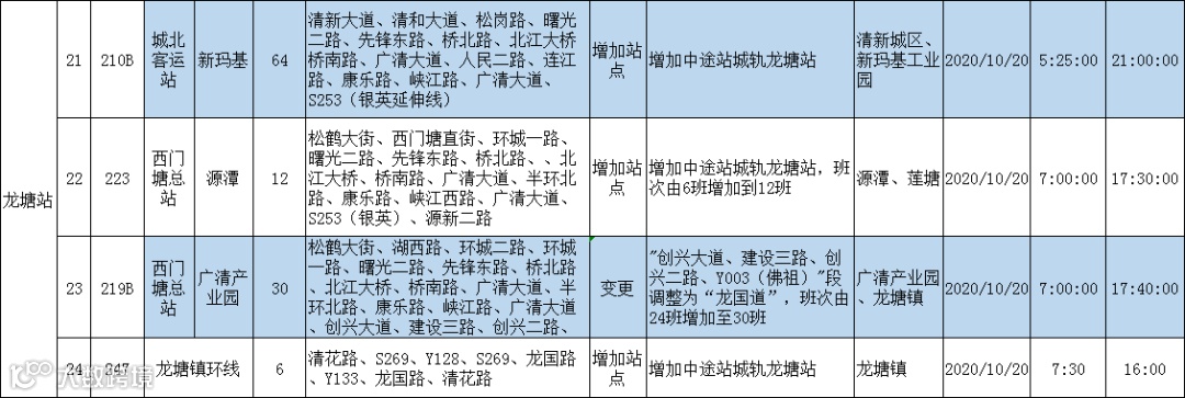 所有线路均为新增或变更站点,以市区连接南部广清产业园、美林湖等区域为主。