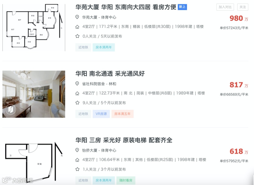 根据链家数据,能满足朱小姐四房+学位要求的,当下放盘仅有5套,选择余地非常少,而且哪怕是1998年的老房子,单价也要5.7万/平。