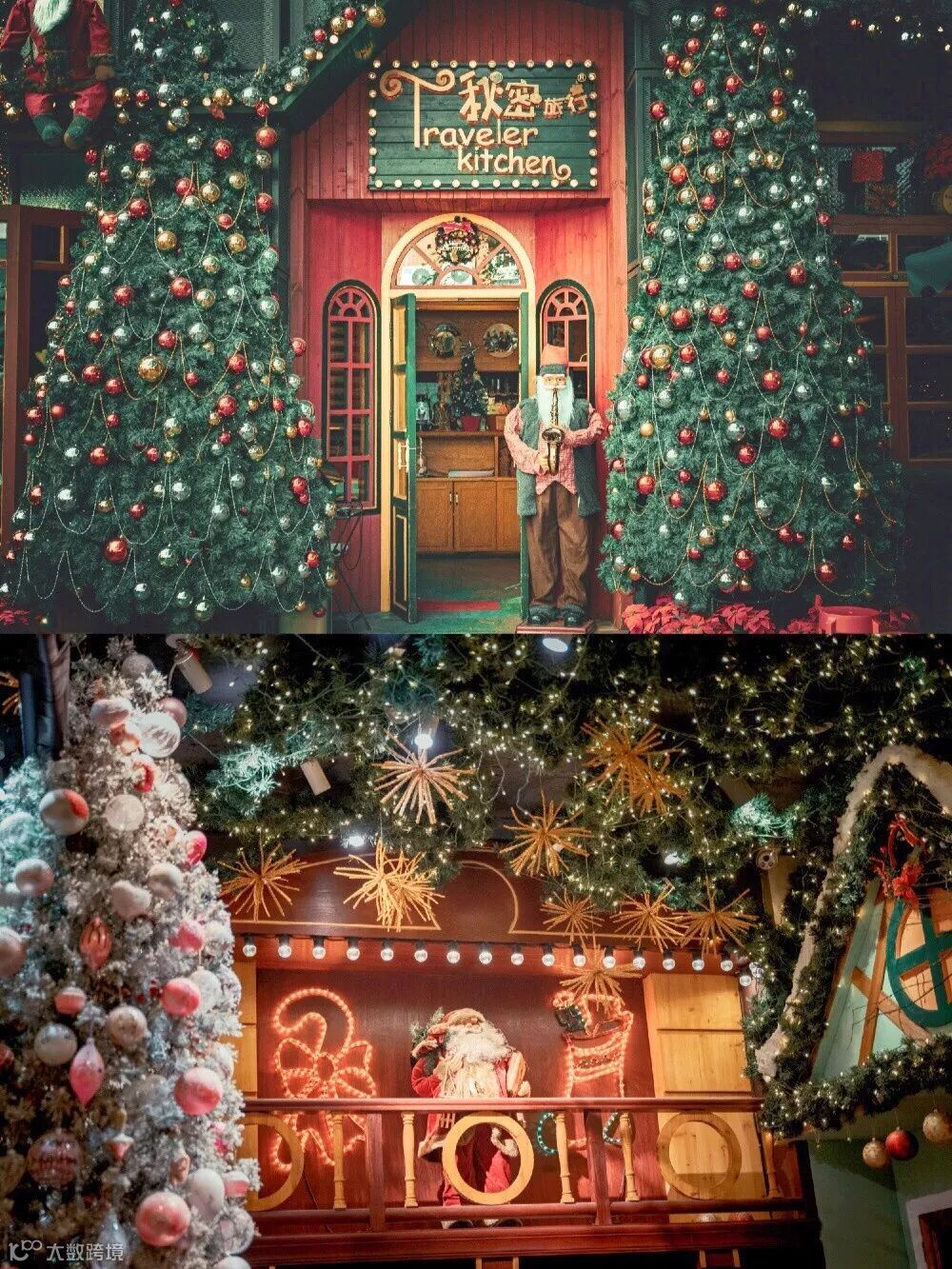店铺的所有设计,都包含了圣诞的元素,最为突出的就是门口的两颗5米高的圣诞树。
