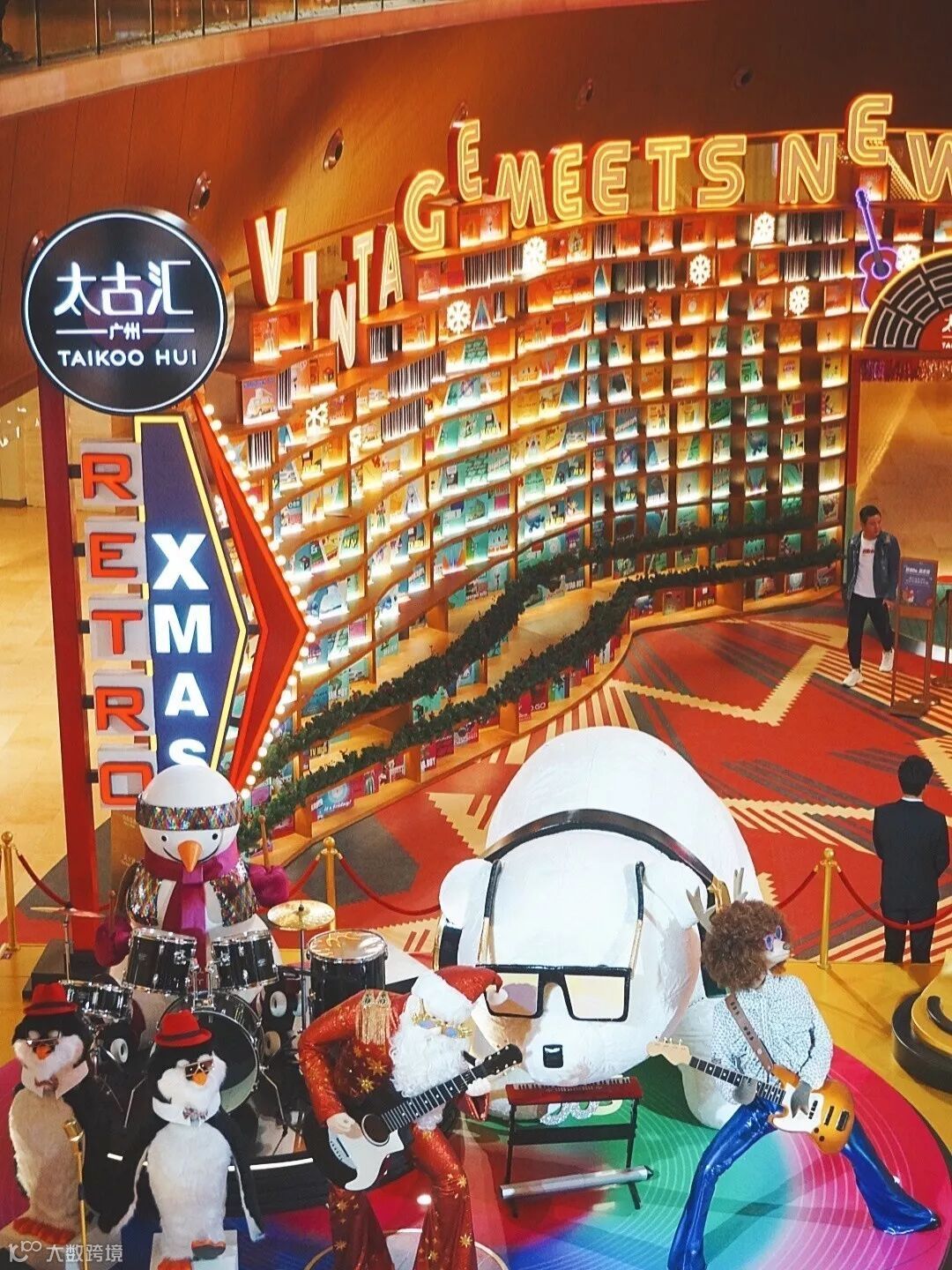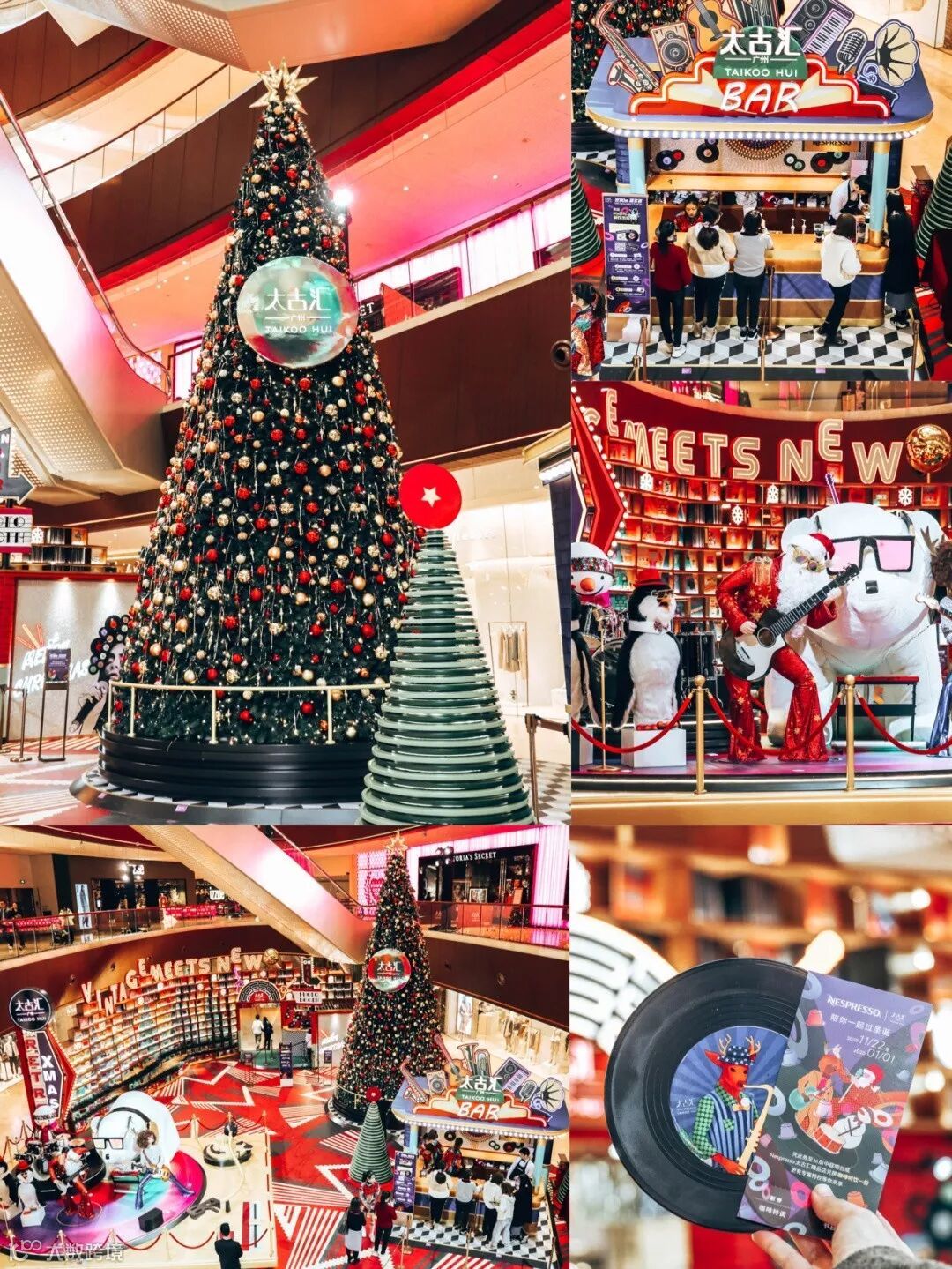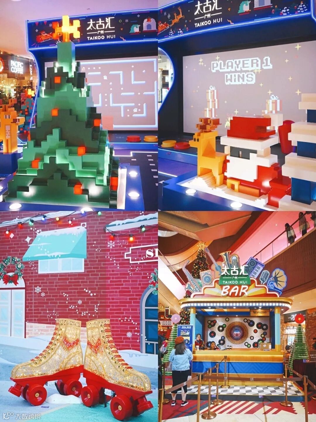 两层楼高的圣诞树,怀旧像素街机游戏,满墙的黑胶唱碟,绚丽街头轮滑场,满满的80年代的感觉。