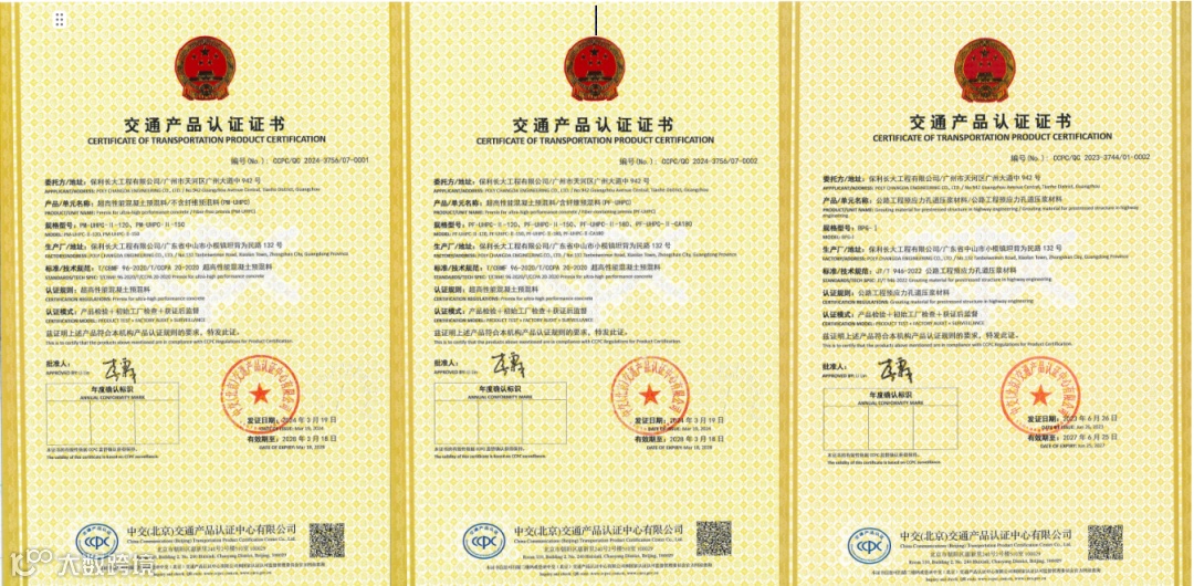 超高性能混凝土相关产品认证证书