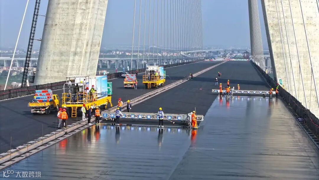 香山大桥特大规模国产环氧沥青钢桥面铺装现场