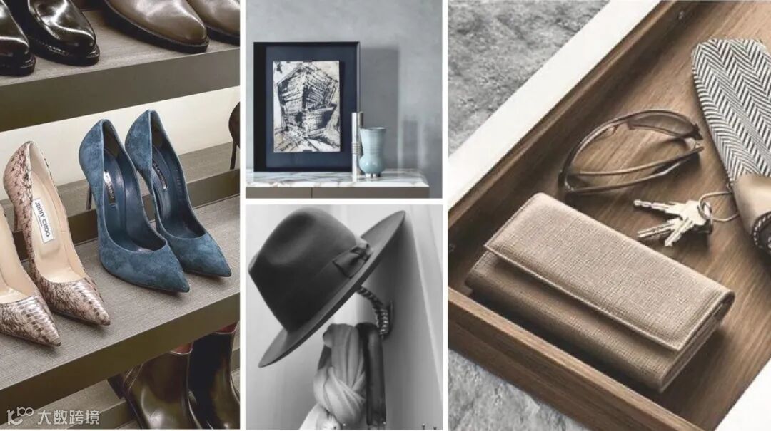 赠送入户玄关柜的决定,也在进一步升级空间。可调节的面板,女主人的长靴、踝靴、高跟鞋都有了归置的地方。日常所需小物品存放此处,进出门一眼就能留意到。