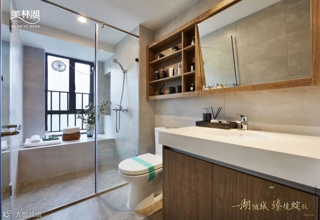 组团双卫浴均实现干湿分离,从淋浴区到洗手台,灵巧的结构让功能不再互相干扰。合理的使用隔断,极力达到卫生间环境的整洁美观。
