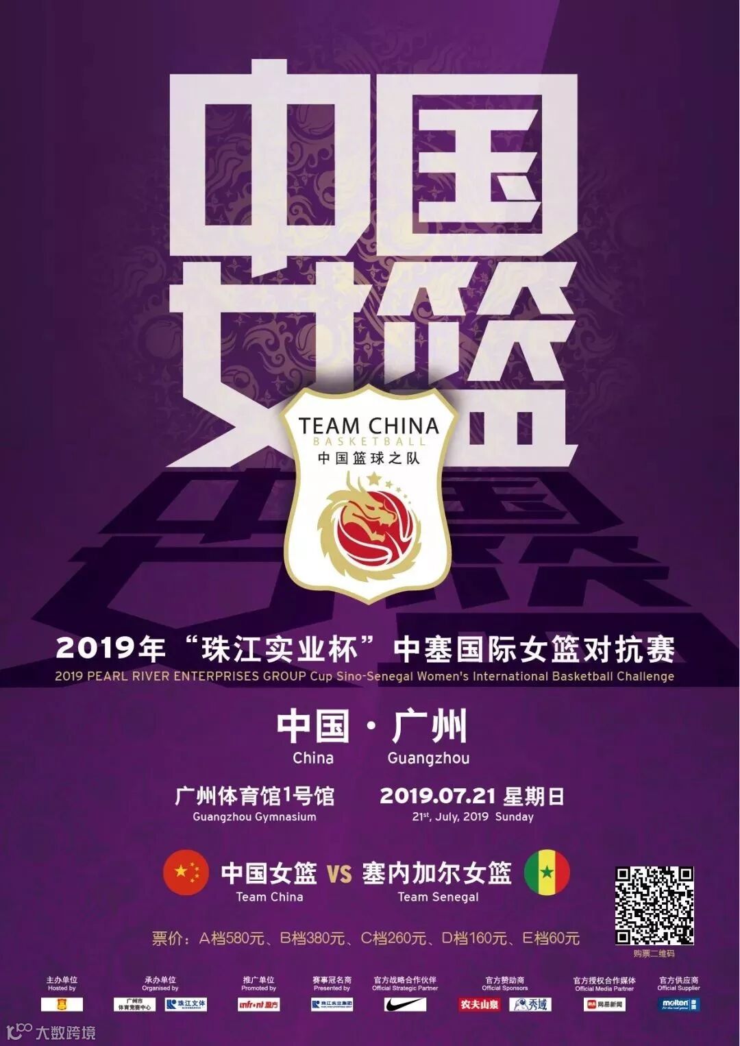 此次赛事由中国篮球协会主办,广州市体育竞赛中心、广州珠江体育文化发展股份有限公司承办,广州珠江实业集团有限公司独家冠名。