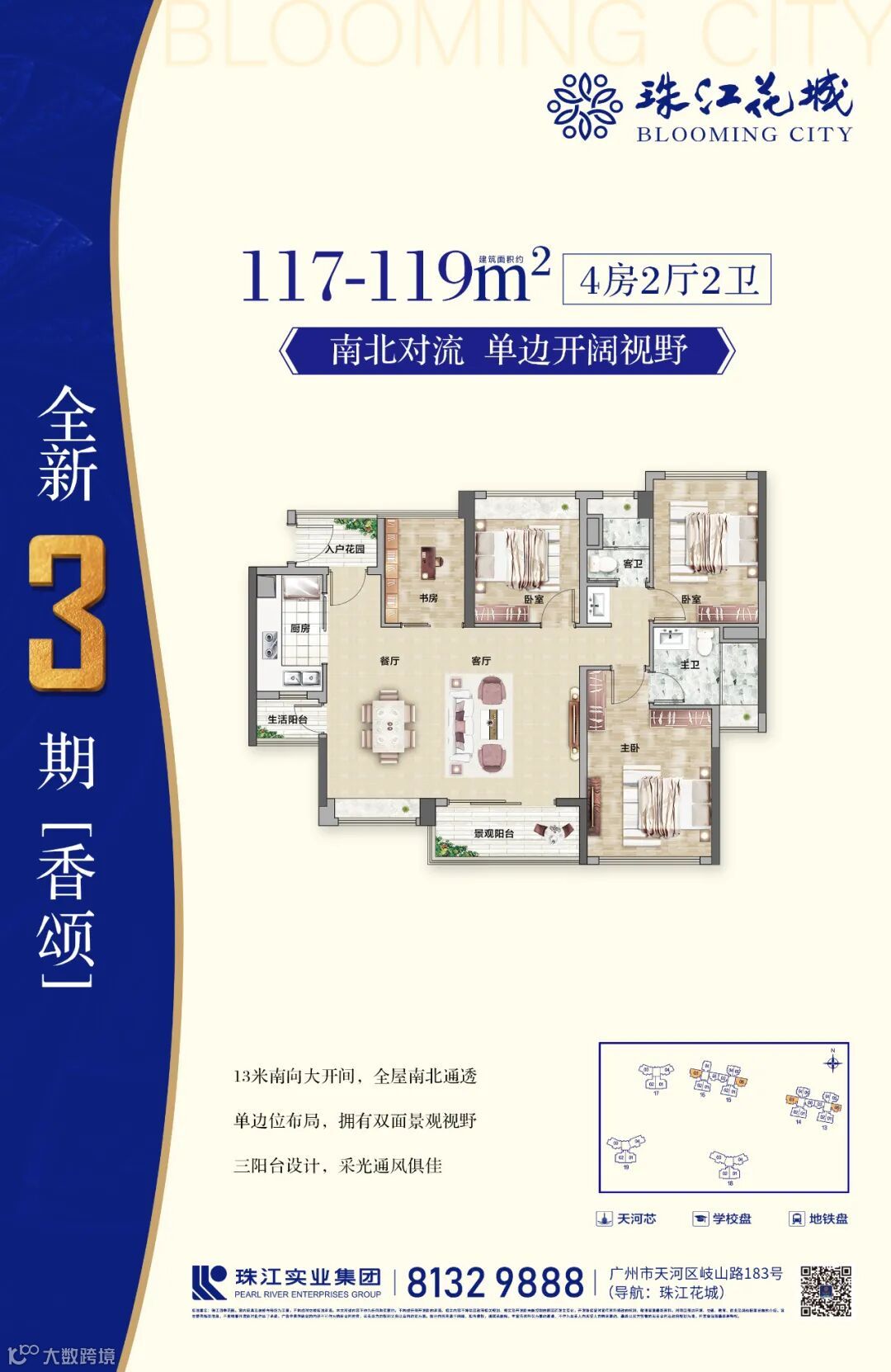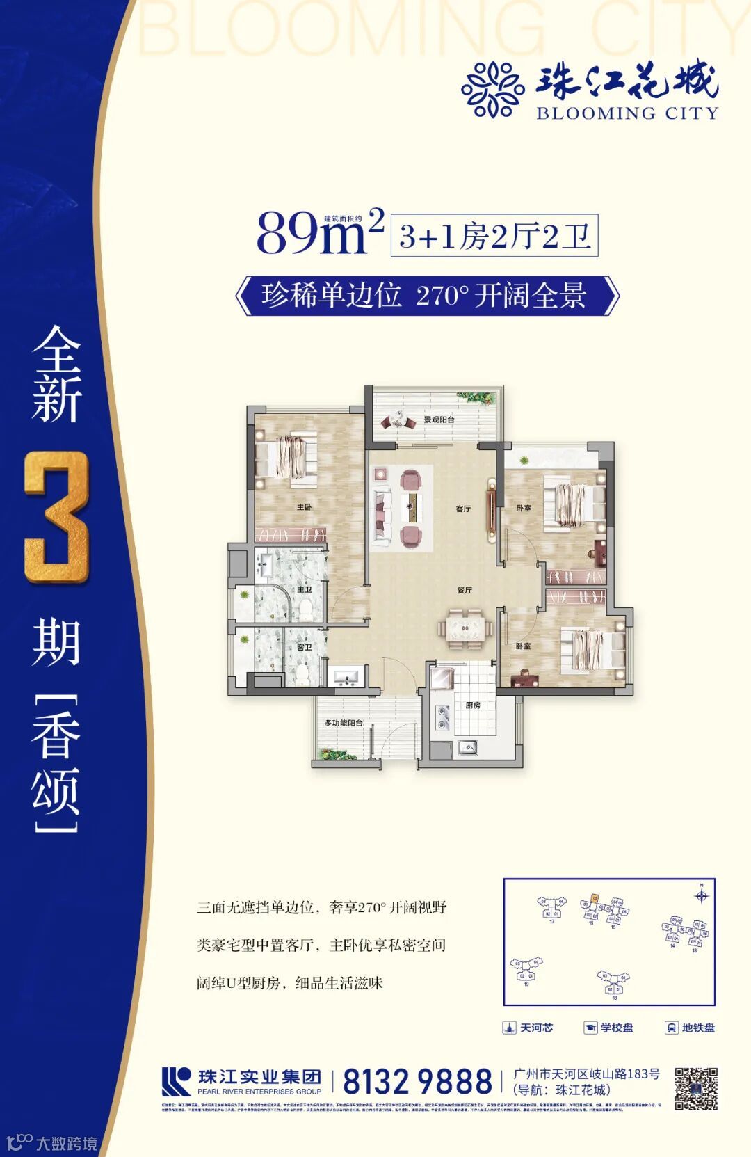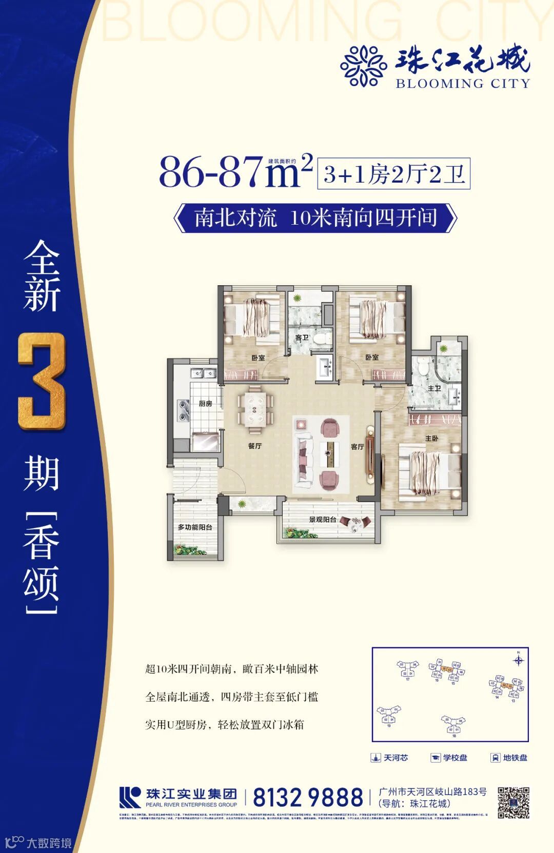 尤其是,建面约86平的3+1房,双开间朝南、带主套、生活阳台,无论在设计、面积段、甚至总价方面,放眼天河都难逢敌手。