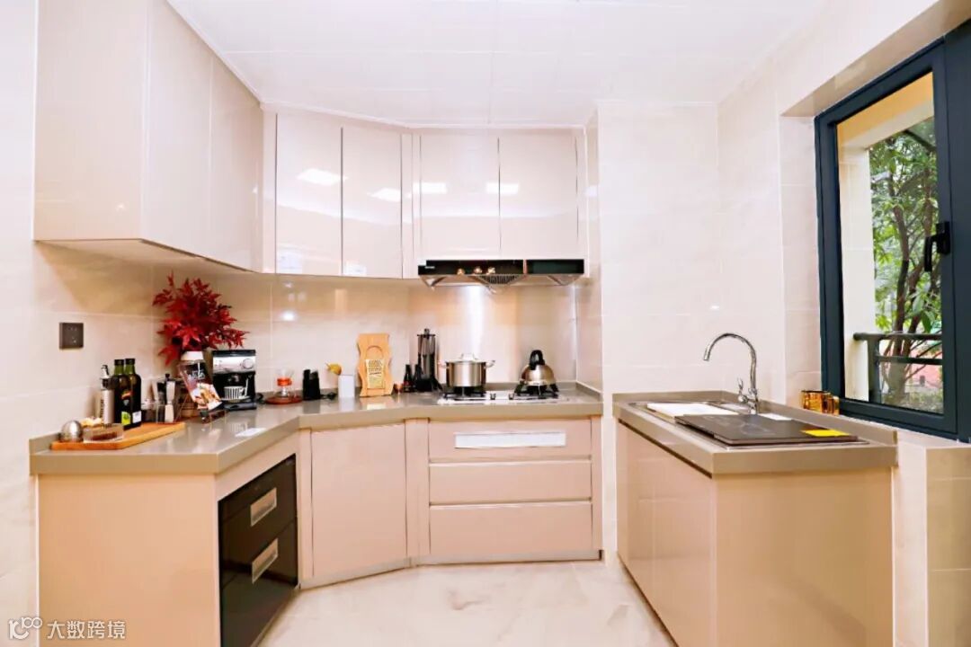 卫生间有浴霸、智能马桶盖;厨房有凉霸,甚至还自带智能洗碗机、厨余垃圾处理器等高端交标。