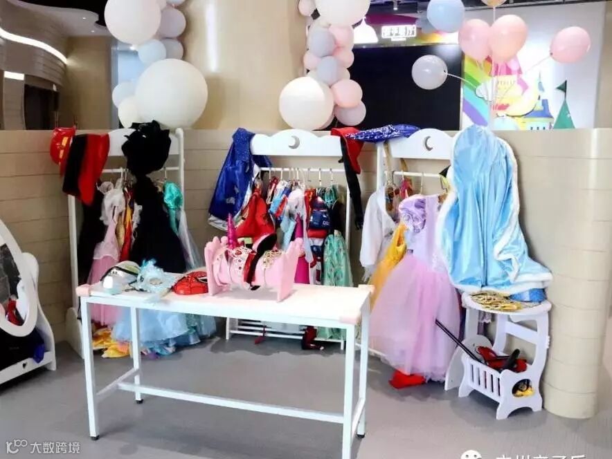 并且这里不仅有吃有玩,还有满足小小少女心的换装区。公主裙款式众多,件件精美,无论是想变成白雪公主,还是神奇女侠,抑或是英俊的小王子,这里均能提供。