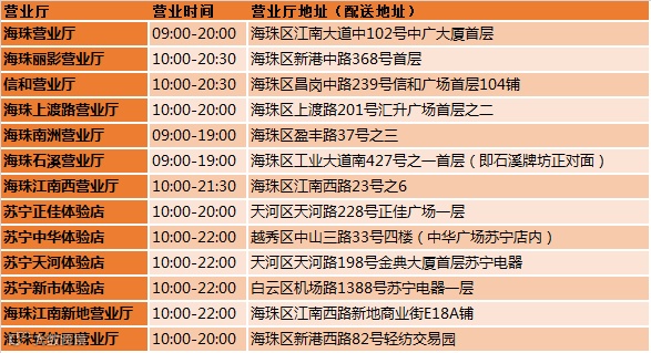 海珠区各大联通营业厅地址: