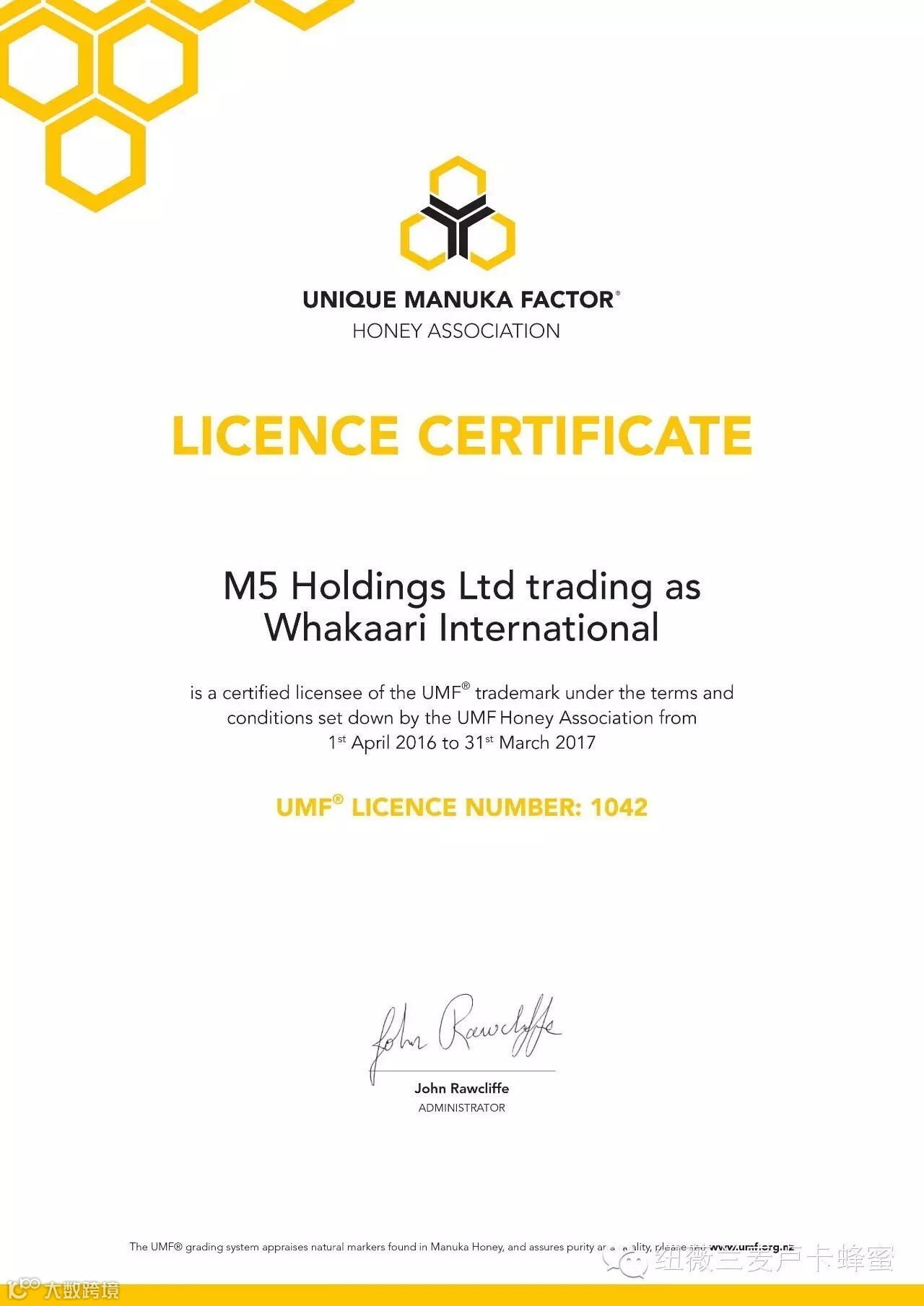 产品来自新西兰UMF标签执照的持有者。