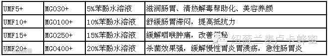 UMF的蜂蜜同苯酚(弱酸杀菌剂)水溶液的抗菌能力相当。如:UMF5+代表其抗菌能力与苯酚5%的水溶液抗菌效力相同