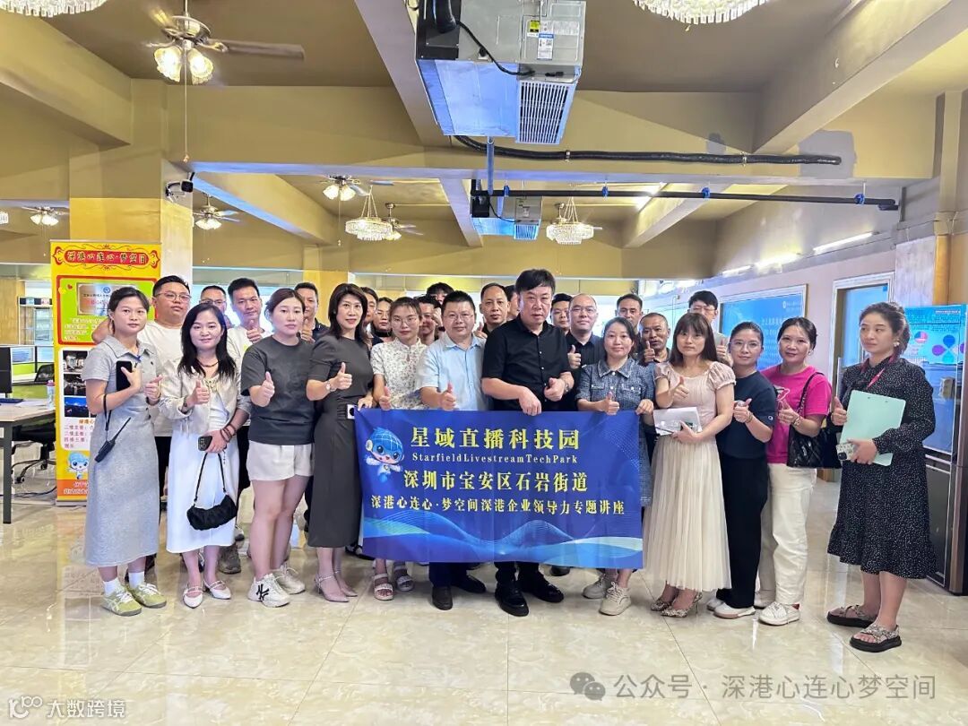 2024年9月11日,星域直播科技园在深圳市宝安区石岩街道宝源社区的指导下,成功举办了“深港心连心•梦空间深港企业领导力专题讲座”。吸引了近30位深港两地企业代表参与。