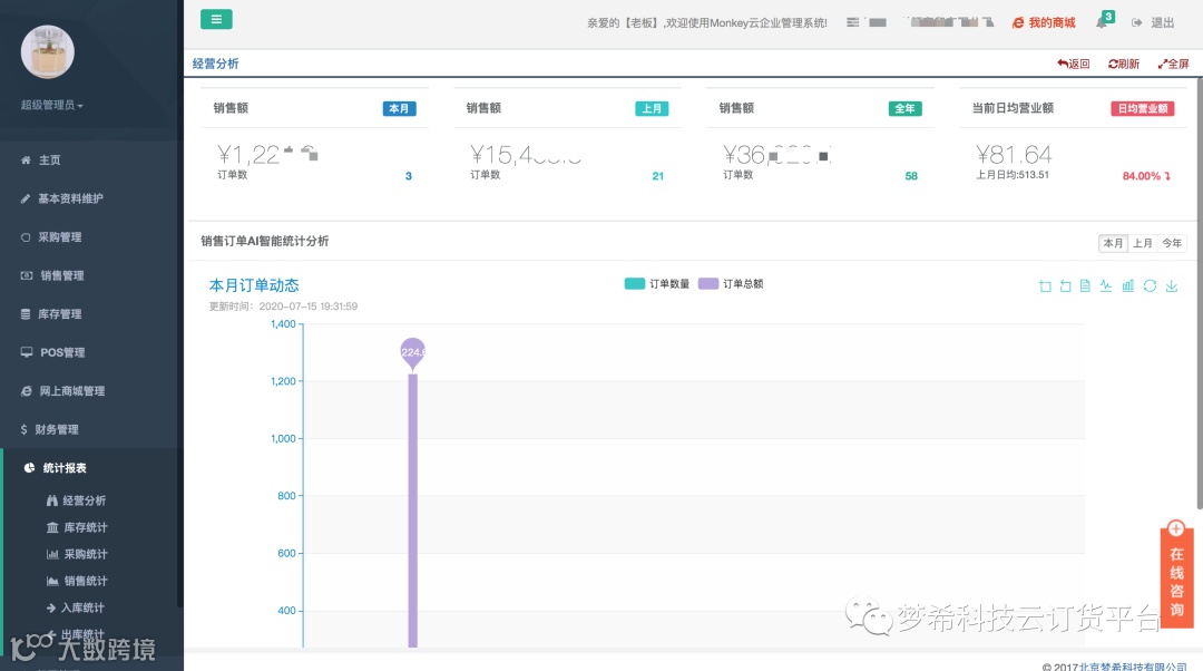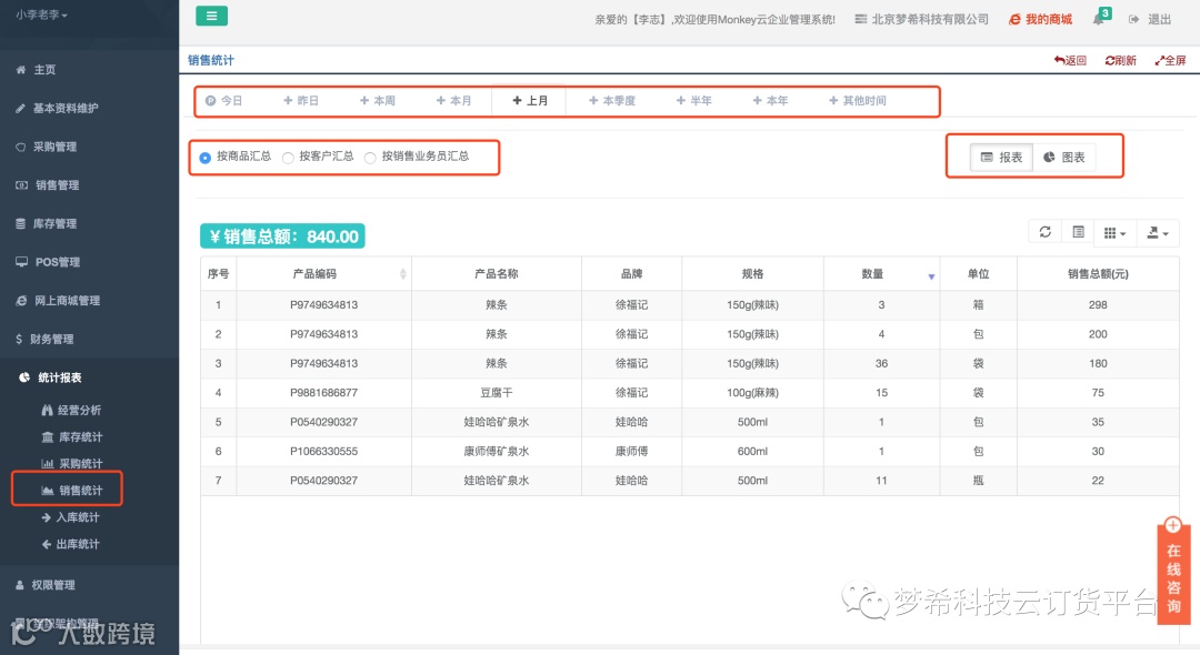 行业领先的大数据预警帮您及时跟进异常客户和商品;基于大数据的智能统计功能,采购统计,销售统计,成本利润统计,帮您制定每个客户都不一样的营销策略,提高营销ROI。