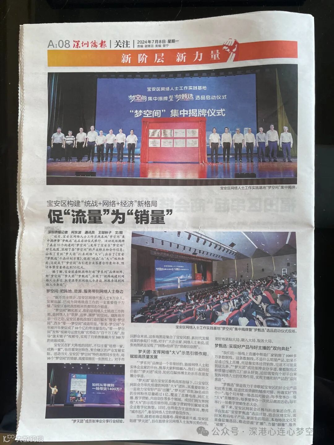 导读:2024年7月10日落座宝安区石岩街道料坑大道31号直播星域科技园,深港心连心.梦空间是得到区领导的认