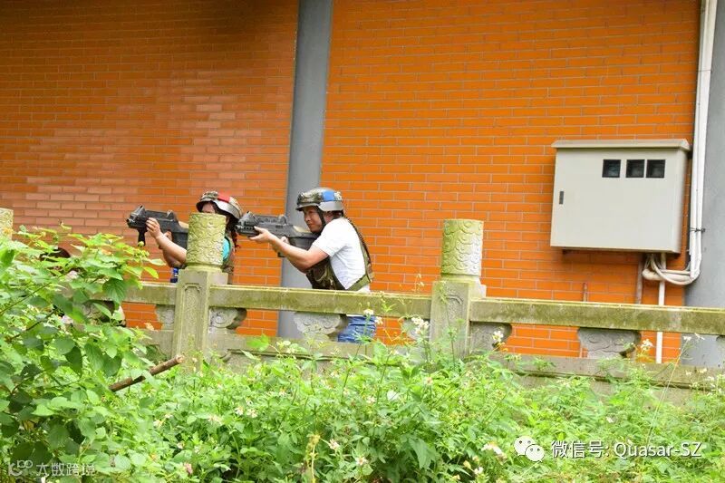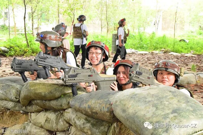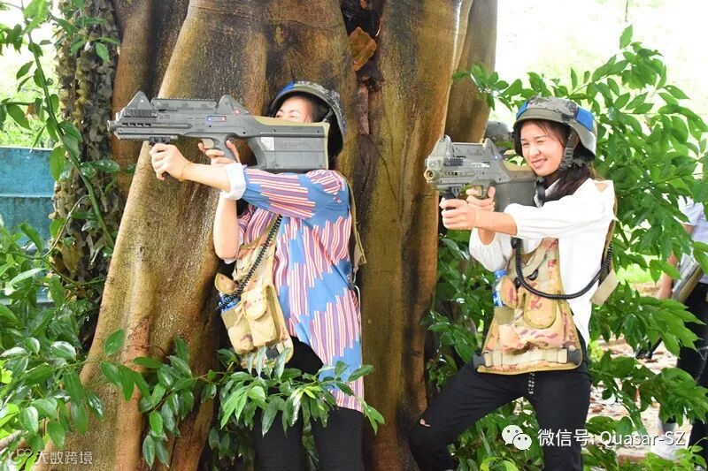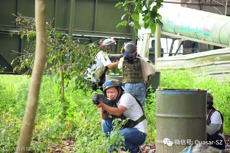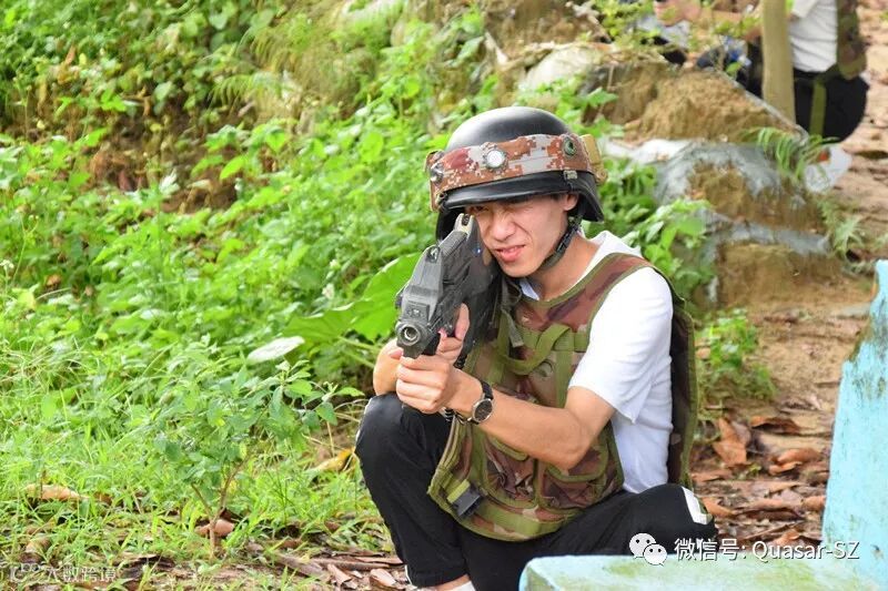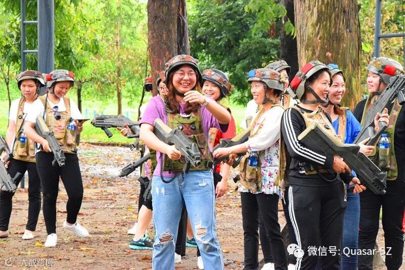 拓展活动在东莞市石碣檀香导拓展基地进行,在教练的指导下,大家对激光枪械的正确使用、对抗规则等进行认真的了解和实战性演练。