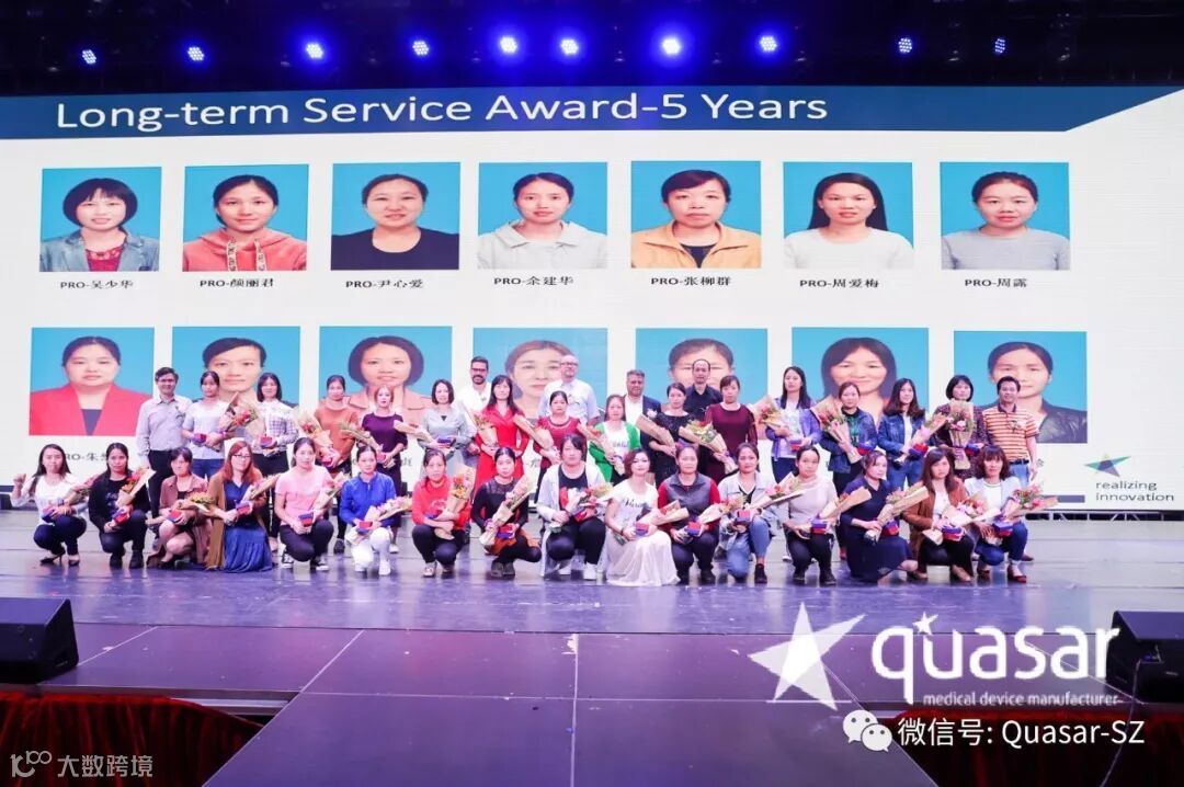 The first chapter of the party was the 2018 Long-term Service Awards Ceremony. There is such a group of people who return the Quasar with gratitude,they are loyal and reliable. They show their own value in their positions and make unremitting efforts to create wealth for Quasar. A total of 82 employees received the 2018 Long-term Service Award, including 7 winners of the 15 years long-term service award, 12 winners of the 10 years long-term service award, and 63 winners of the 5 years long-term service award.