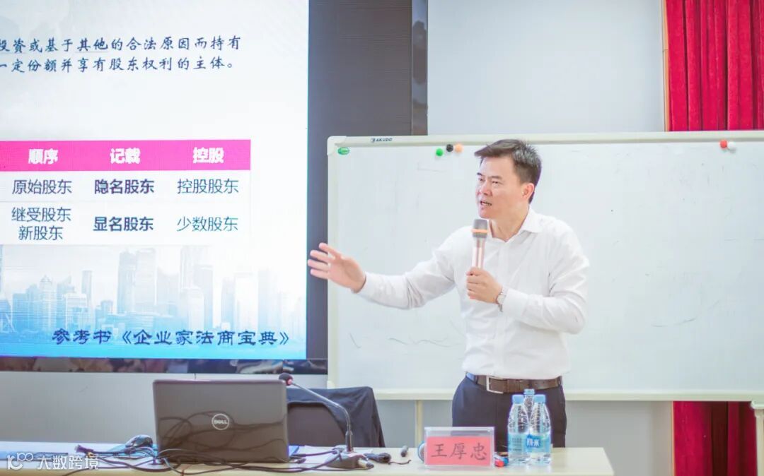 本次培训为期一天,邀请上海乐邦律师事务所首席合伙人王厚忠讲授了《公司治理与董监高履职实务》。王厚忠围绕“三会一层”强化公司治理、董监高任职资格与义务等方面,结合京东、华为、真功夫、当当、宝万之争等大量公司治理案例,对董监高履职过程中需要规避的法律风险、承担的法律责任进行了详细的解说。