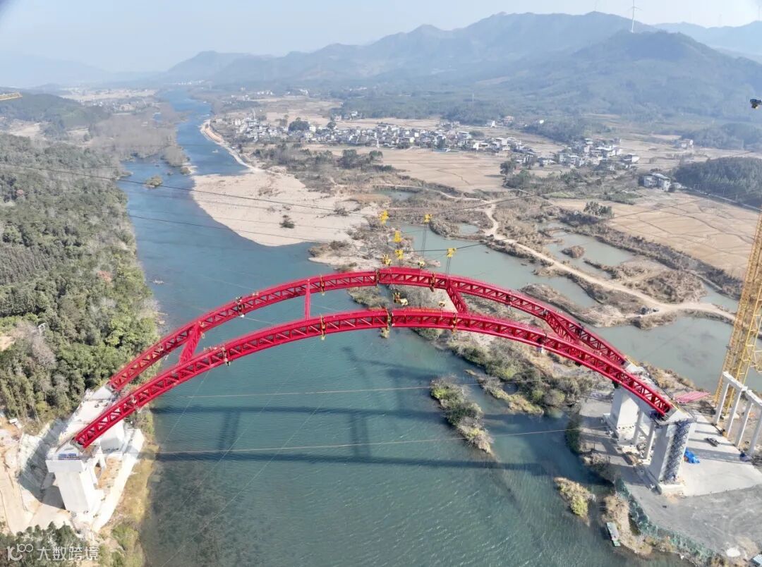 1月15日,随着桂林外环高速公路漓江特大桥最后一节拱肋安装到位,标志着漓江上最长最大桥梁拱肋顺利合龙,如彩虹般横卧在桂林山水间。