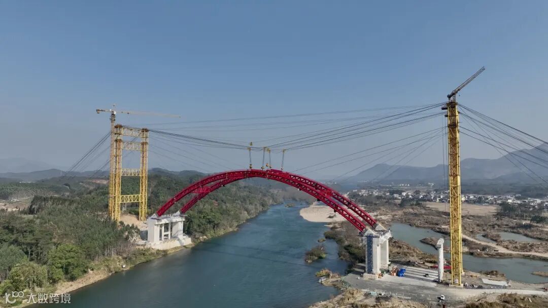 为保障拱桥施工顺利推进,项目团队精心组织,充分发挥丰富经验和科技手段,采取拱肋立拼工艺控制,提前厂内模拟拼装,修正拱肋安装参数和扣吊分离体系,减少拱肋线形受缆索吊装系统影响。同时采用首节段原位组拼工艺,提升首节段安装精度。通过多因素耦合敏感性分析预测拱肋线形,并采用一次张拉不调索及无应力状态合龙的控制方法,优化索力及拱肋线形。在拱肋起吊安装过程中,项目团队还运用了多种传感器和智能监控系统,对缆塔偏位、柱脚应力等进行实时监测,为安全施工保驾护航。