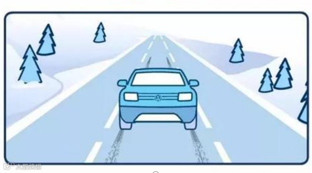 在有冰的路面上行车选线直接关系到安全和行车的顺畅。尽可能保持直线行走,不要频繁换道,有车辙处最好沿车辙走,没有车辙处要注意周围参照物,辨明道路的走向,提防覆雪掩盖处的坑洼,尽量在路中间行车。