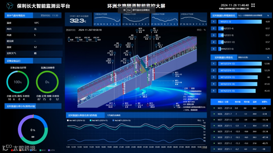 项目创新运用Midas GTS NX软件对下穿隧道进行整体结构建模,模拟施工过程较危险工况,分析出结构薄弱位置并进行智能监控监测,以保障下穿隧道施工的安全与质量。