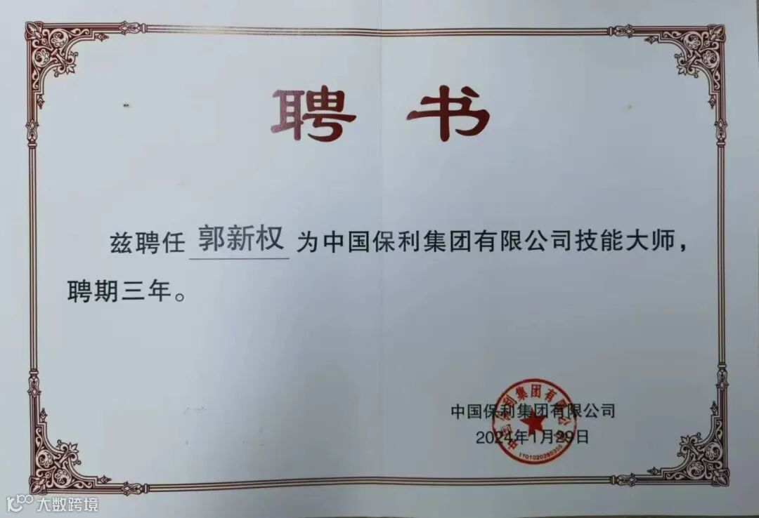 没有遥遥领先的文凭,也不是侃侃而谈的大家,但他却是养护公司施工一线的业务标杆。5月20日保利集团2024年干部人才工作会议暨专家座谈会,他在掌声中被受聘为中国保利集团有限公司“技能大师”。聘书上,赫然印着一个平凡的名字:郭新权。