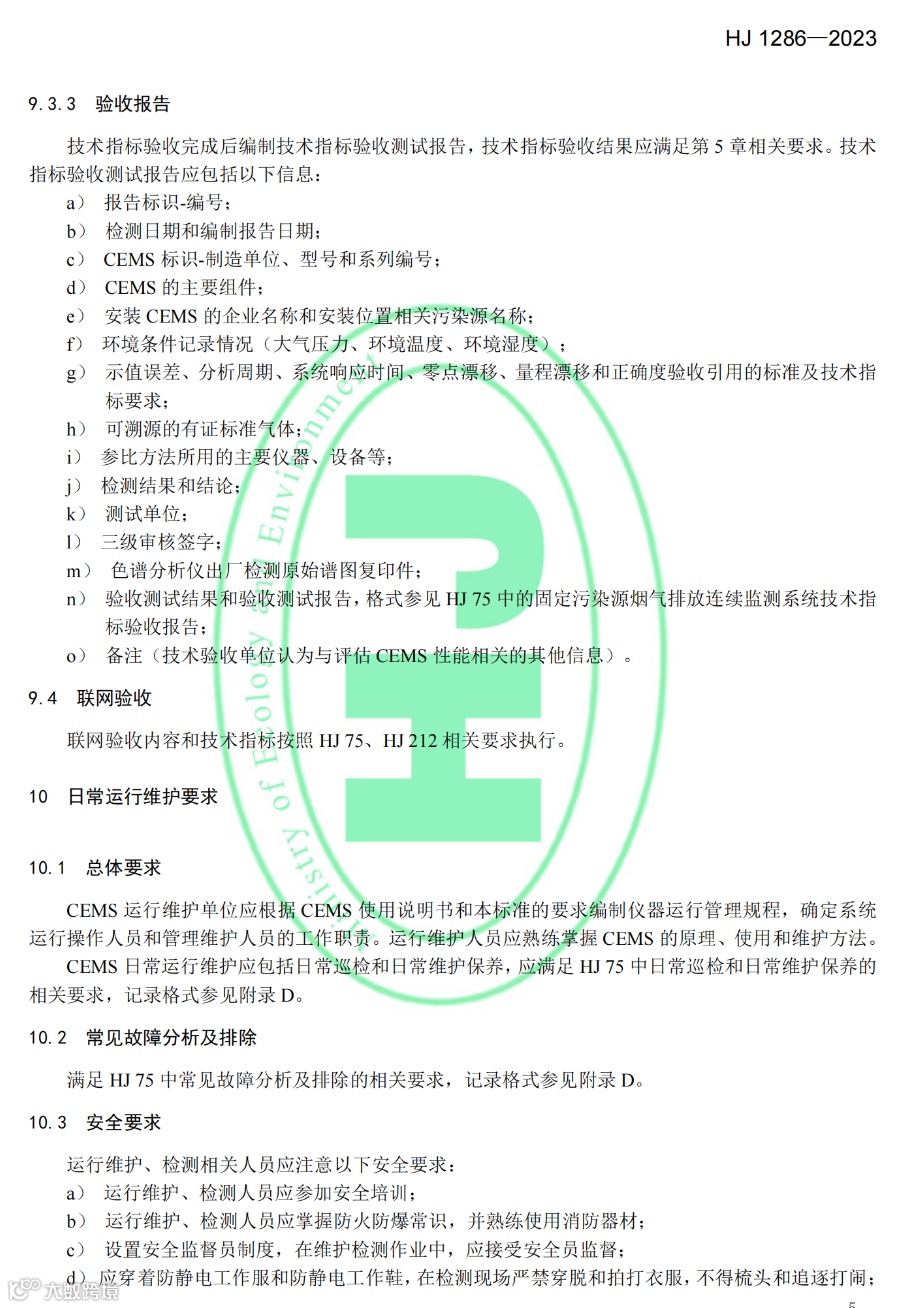 相比HJ 1013标准,新增了10.3安全要求,要求运行维护、检测相关人员要注意和遵守的一些安全注意事项。