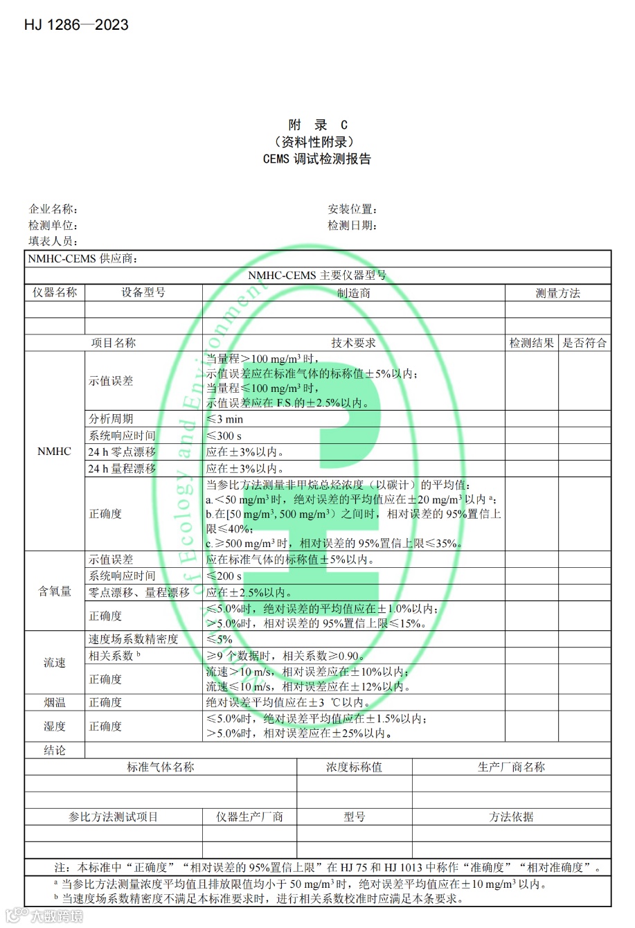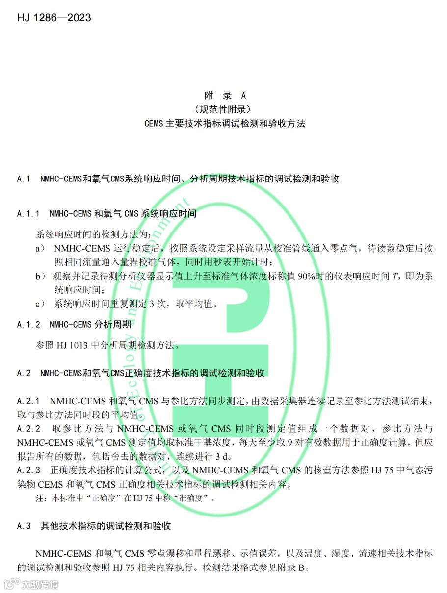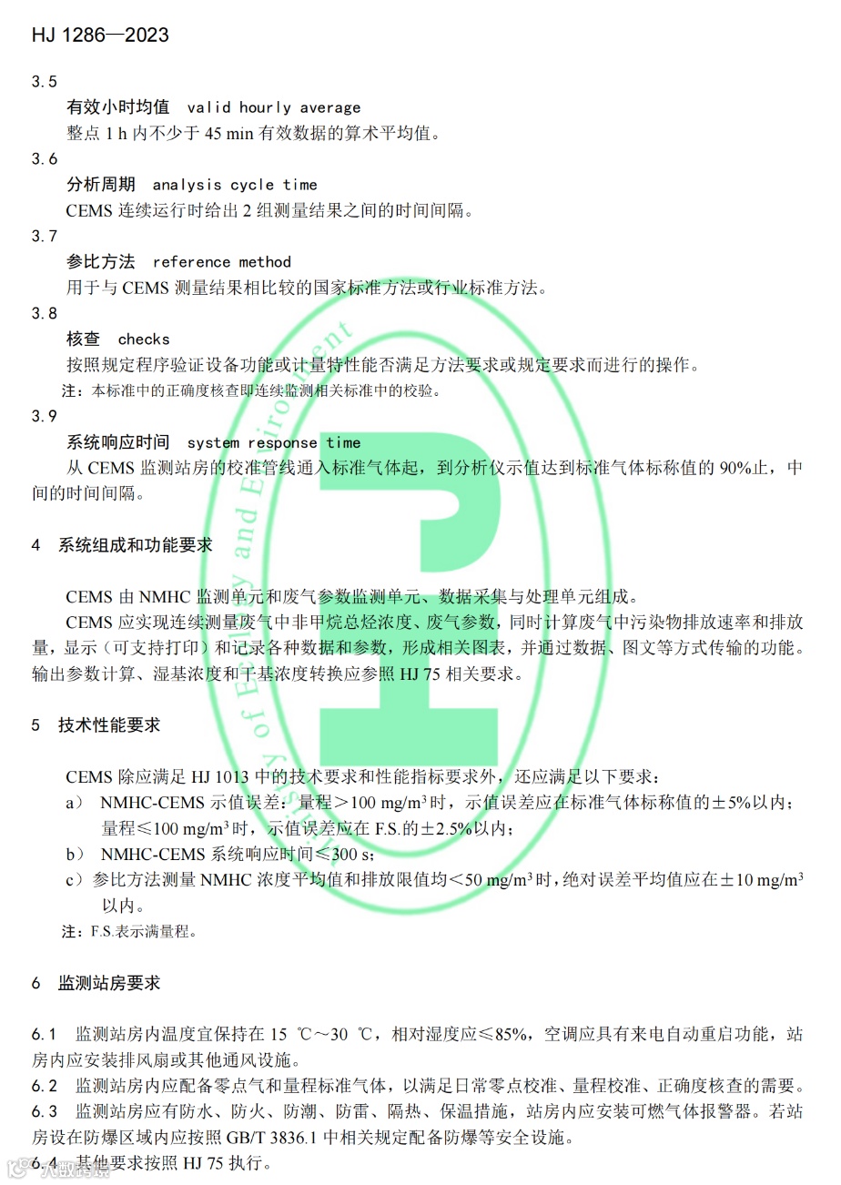 相比HJ 1013标准,新增了系统响应时间的指标要求,“NMHC-CEMS系统响应时间≤300s”