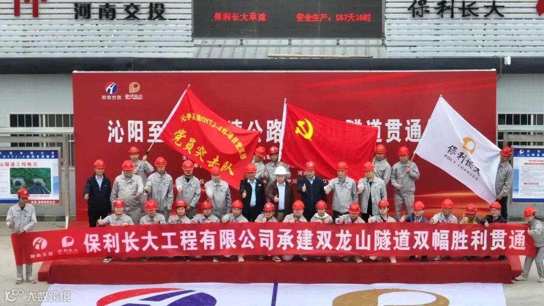 洛阳市交通运输局四级调研员郑世仿出席隧道贯通仪式并讲话,宣布双龙山隧道双线贯通。保利长大副总经理毛磊、第三分公司总经理吴存全等出席贯通仪式。