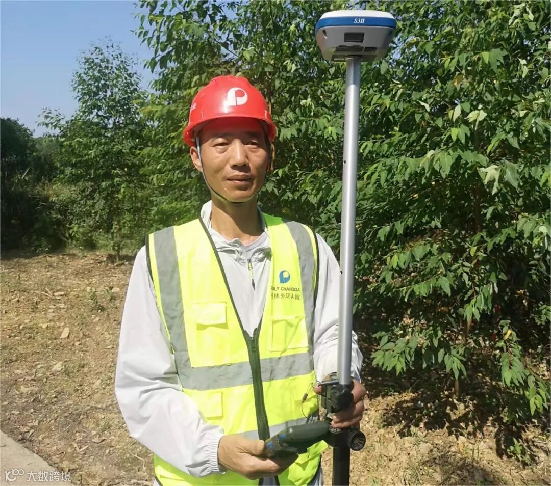 桂林外环A段项目进场后,徐伟聪每日晨曦渐露便会出发作业,带着他的那顶旧草帽、包里背着饮用水,拄着一根登山杖沿着昨日的终点继续前行。清晨的山林潮气弥漫,还没有走到,就已经汗流浃背,衣服上也会被印上一层汗碱。桂林外环A段全线57公里,地形复杂,在实地勘察过程中,红线区域内的山体坡度较陡,杂草丛生,只能脚踩在坑洼处进行翻越。他用脚步丈量着项目现场的每一寸土地,并用特殊符号标注出施工图纸的关键点和部位,他就像整个项目规划的眼睛,大脑中能刻画出项目主线的大致轮廓。
