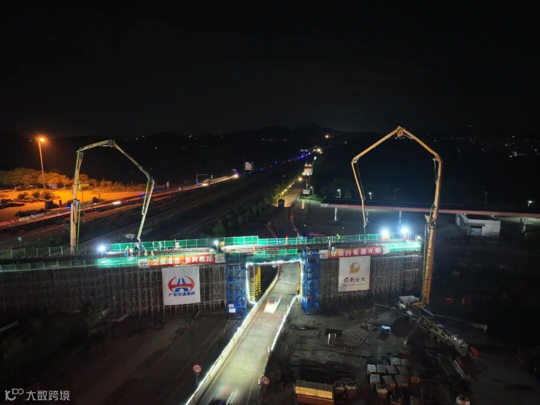 9月17日,经过12小时的连续奋战,项目施工的人行景观连廊首联现浇箱梁底腹板顺利浇筑完成,服务区人行天桥上部构造施工正式迈入新阶段。