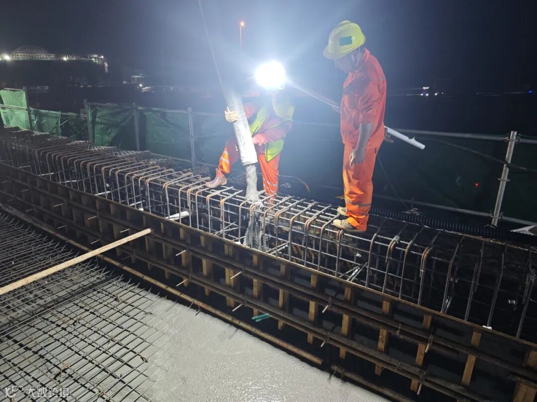 对此,项目早早完善了各项跨路施工手续,制定了详尽的交通疏导方案,多次召开讨论会,反复研究泵车趴位、混凝土运输路线。交通导改期间,项目每日安排专人排查交通设施、警示标志是否存在安全隐患,重点关注警示锥桶的设置密度及距离是否规范合理等,以确保安全防护设施完整、规范、清晰。浇筑期间,项目设专人值守各途径路口,有效确保了混凝土到场时间,杜绝了安全、质量隐患。