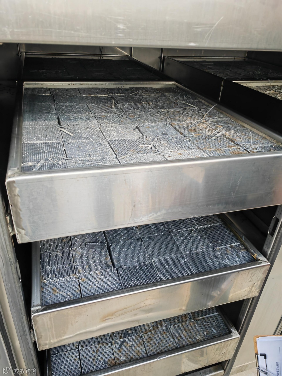 案例1:某企业的废气处理设施活性炭表面附着明显的颗粒物。经查,该企业在生产过程中,喷漆工序产生的废气中夹杂着粉尘、漆雾等粗颗粒物质,且未经水喷淋、过滤棉等预处理,直接接入活性炭箱体,导致活性炭堵塞,失去吸附能力