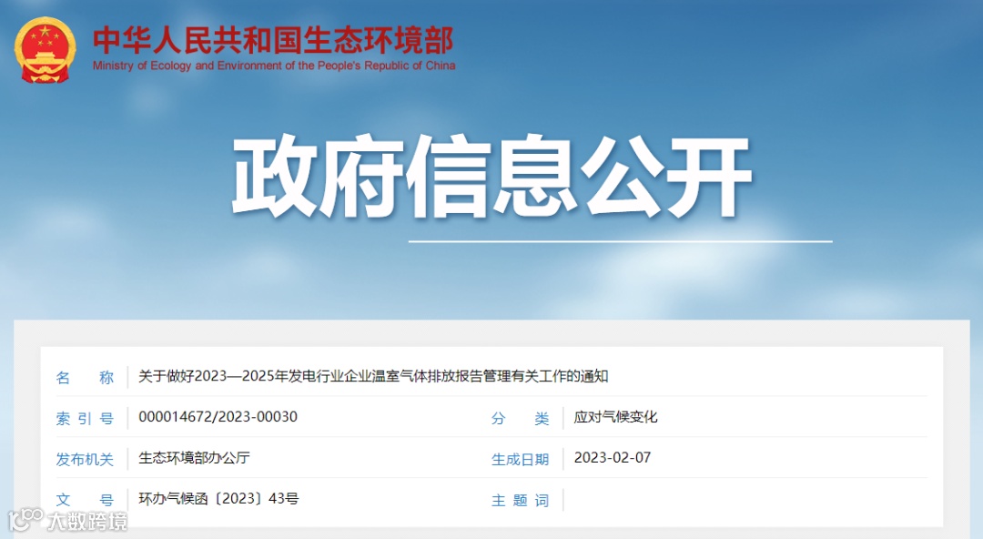 为加强企业温室气体排放数据管理工作,建立健全数据质量管理长效工作机制,现将2023—2025年发电行业企业温室气体排放报告管理有关工作要求通知如下。